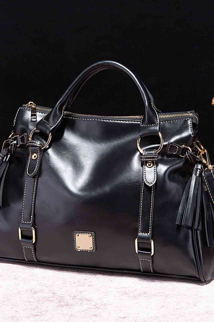 PU Leather Handbag with Tassels